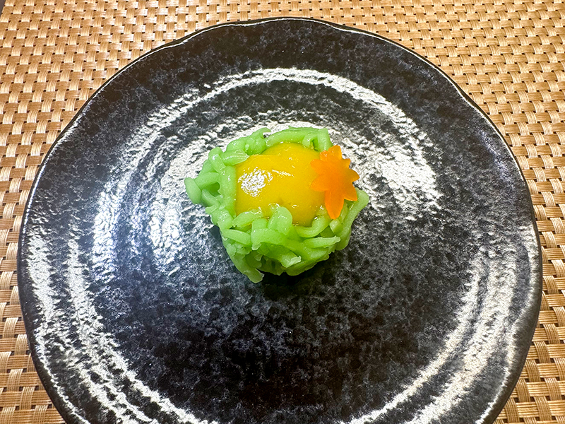 松茸の頭部分は小豆の練り羊かんを使ってあらわしました。