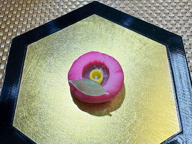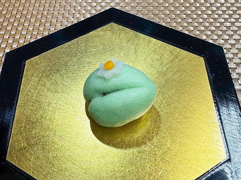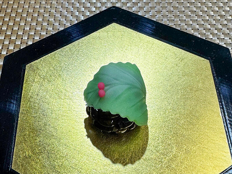 葉の部分は練切生地で中は小豆のかの子のつぶ餡になります。